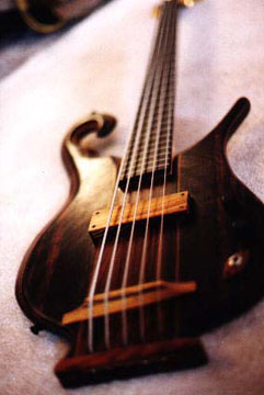 Hey, cool looking bass. Too bad the photo is so blurry. It's not difficult to see where the camera is focusing in this one - but even though the pickup may have been a good place to focus, the picture would have been better if MORE of the bass was in focus. This effect of an image having only a small portion being in focus is referred to as having a "shallow depth of field". In this case, pretty much only the area immediately around the pickup is in focus. If the bridge and perhaps more of the body and neck were in focus (say, maybe to to the 12th fret or so), we'd simply have more visual information to take in about this bass.If your camera decides to do to this, your picture will still produce an image with a shallow depth of field. For this and many more reasons, it's always nice to have a camera that allows you the option of controlling shutter speed and aperature manually. It may be a bit more to think about at first, but ultimately you'll have way more creative control in your picture taking.Solution: