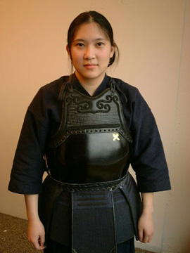 This is a picture of Nancy wearing kendo armor (kendo is a traditional Japanese martial art). Not having access to a 'real' photo studio, I just asked her to stand in front of a empty wall near the kitchen, with an open window acting as the light source. I used Photoshop to convert the image to black and white, "remove" the floor (rubber stamp tool), blur some areas (more blurring near the bottom to simulate large format photography), darken others with the burning tool, and crop the image. The idea was to create something similar to an old-fashioned, formal-looking portrait.