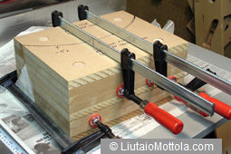 After the wing assembly is glued up it is drilled to accept the wide head connector bolts that will be used to connect the wing to the body of the instrument.