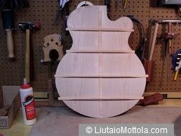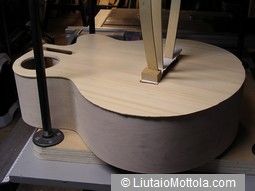 As an acoustic bass guitar the Tinozza shares most construction details with other ABGs and the flattop guitars from which they are derived. This page does not provide complete construction instructions. It assumes that you already know how to construct a flattop guitar or can use one of the readily available books that describe this type of construction in detail. What is included here are some comments and pictures on the construction of some of the features that are unique to this instrument.